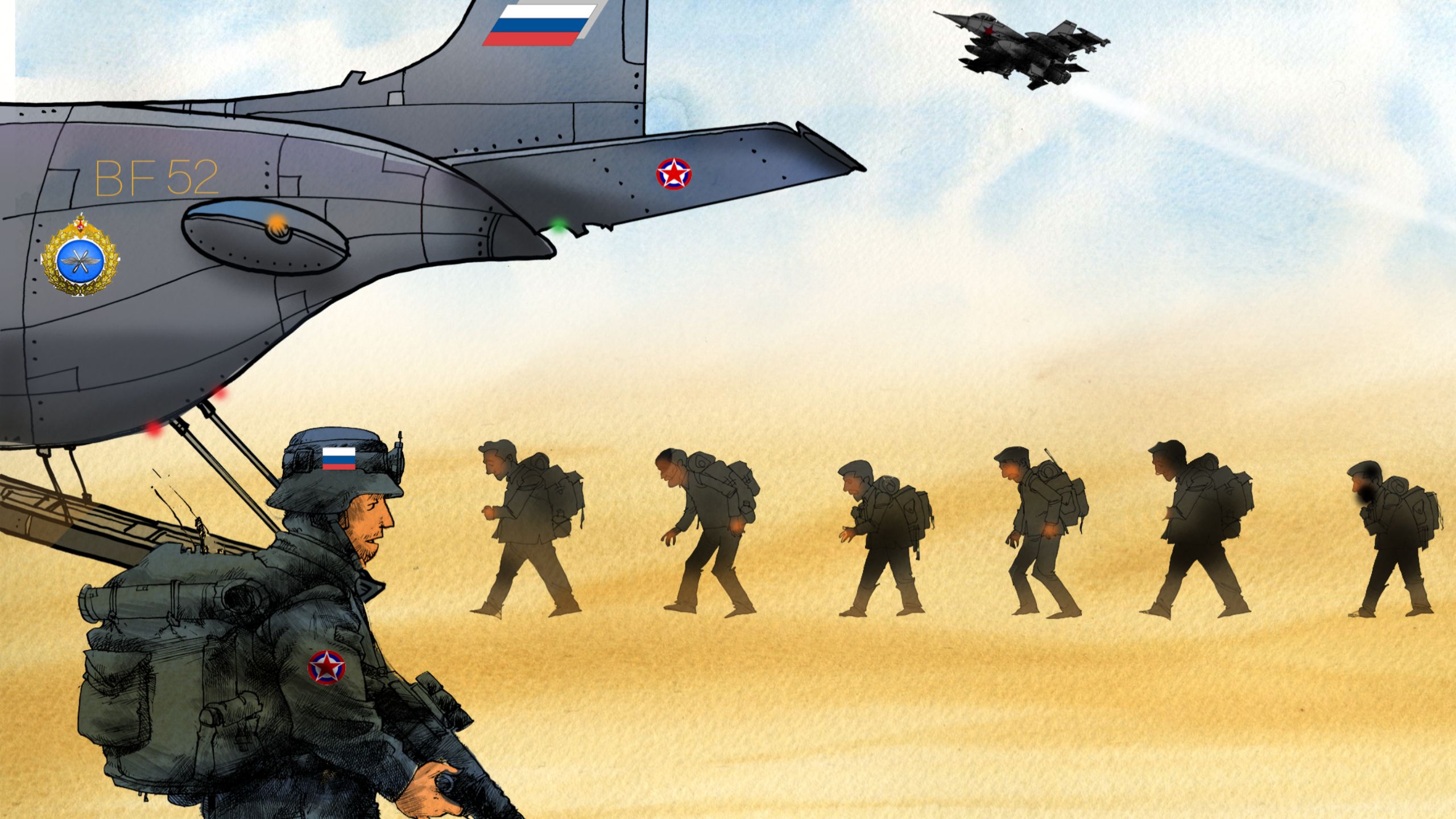 كما أكد أنهم أرسلوا عناصر مع القوات الروسية كمتعاقدين بهويات مزيفة، وعقود قصيرة الأمد بغية دراسة الوضع الأمني.